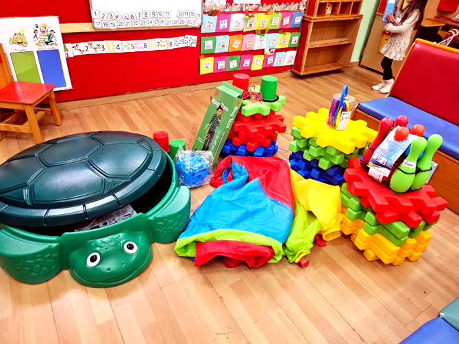 Wir konnten mit einer großen Spielebox mit unterschiedlichen Spielmaterialien für den Außenbereich einen sinnvollen pädagogischen Beitrag leisten.