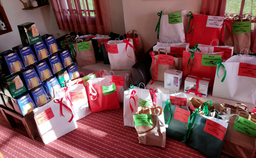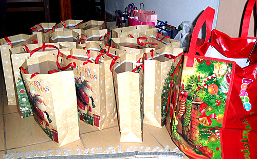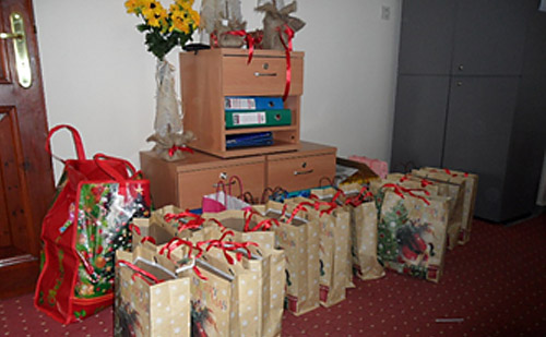 zu Weihnachten viele Lebensmitteltüten und für die Kinder Tüten mit