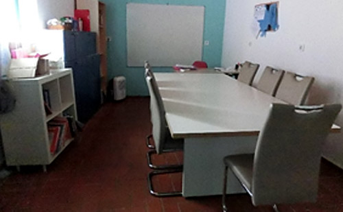 Der große Raum, der auch gleichzeitig Büro der Mitarbeiterinnen ist, ist liebevoll aber mit einfachen Mitteln ausgestattet. Die Toiletten befinden sich in einem kalten Anbau.