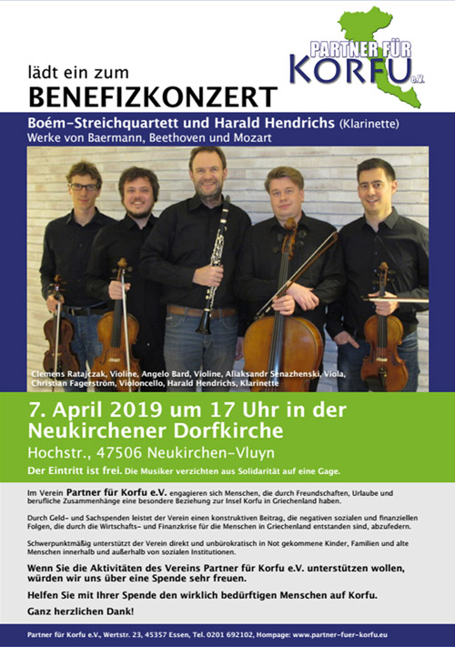 Unser Mitglied Harald Hendrichs ist Berufsmusiker bei den Essener Philharmonikern und gibt Studenten der Musikhochschule Korfu ehrenamtlich seit Jahren Klarinettenunterricht.