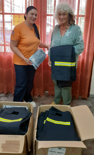 "Übergabe der Schutzkleidung an Anasthasia Leusaki"