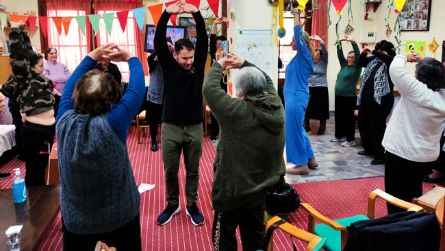 Unser bewährter Physiotherapeut Nikos Raptis, der auch Leiter des KLAP (Schule für Kinder mit Behinderungen) ist, bringt wöchentlich die Teilnehmenden durch Gruppenübungen in Schwung.
