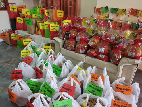 Die gute Zusammenarbeit mit der Metzgerei Avlonitis in Sidari garantiert, dass die Pakete kurz vorm Fest gepackt und zum Abholen bereitstehen.