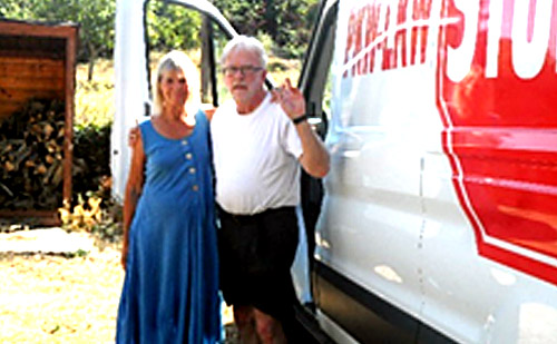 “Unser Lagerverwalter Nikos Pagiatakis am Busbahnhof“